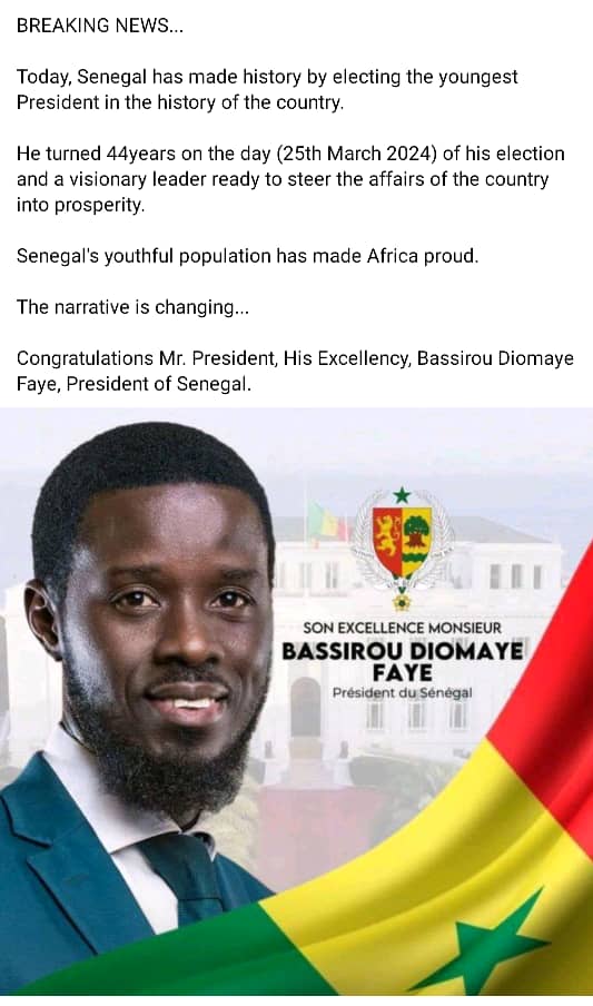 Senegal set pace for good leadership in Africa with a Youth coming into power to ensure the development of the West African sub-region to elect Youth based on Credibility, Competent and Integrity.