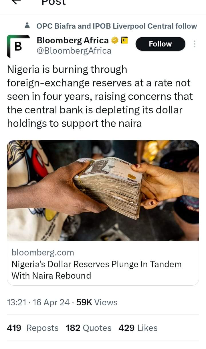 SAVE YOUR HARD CURRENCY BLOOMBERG WARN NIGERIANS