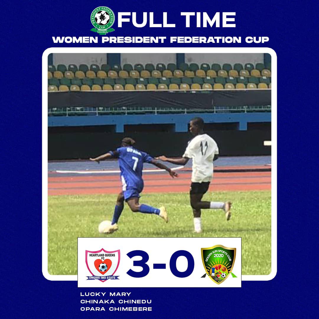The Imo State unbeateable Heartland Queens on Wednesday at the Stephen Keshi Stadium in Asaba, Delta state outclassed non-leaguers, Golden Sun 3-0 to book a place in the President Federation Cup round of 16.
