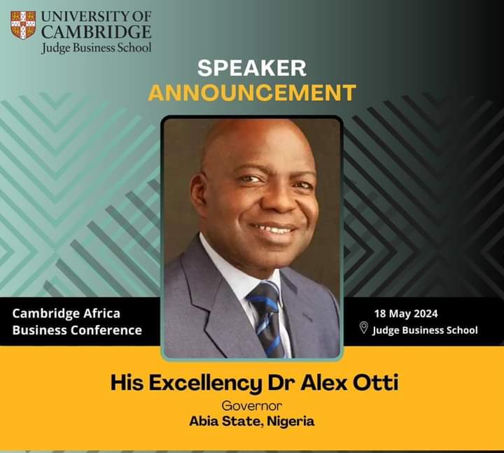 The University of Cambridge, Judge Business School, United Kingdom, will be hosting the Abia State Governor, His Excellency Dr. Alex Otti, OFR, on Saturday, May 18, 2024.