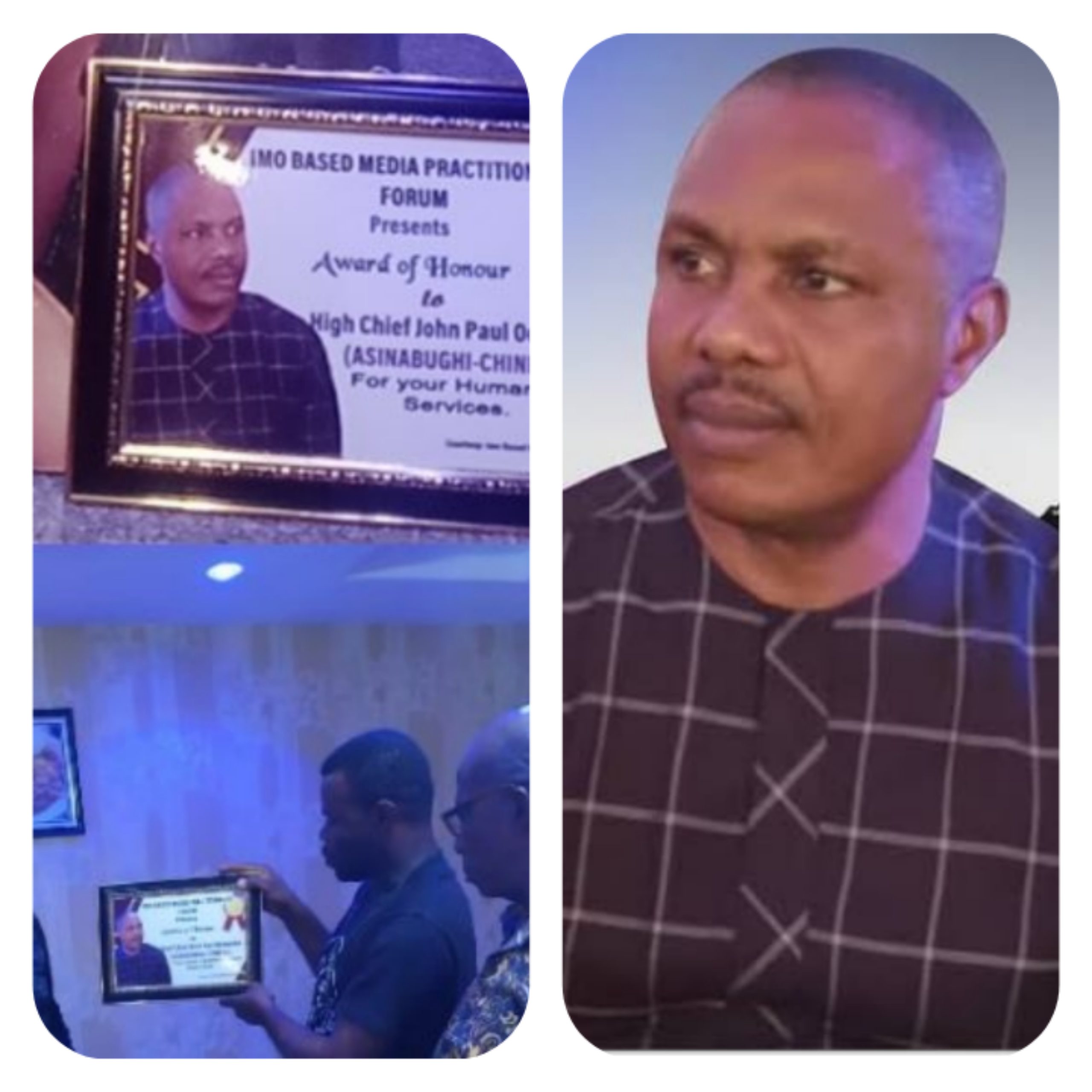 The Humanitarian Service award was bestowed on him during the 2024 Media Summit and Awards Ceremony organized by the South East Media Practitioners at Rockview Hotel.