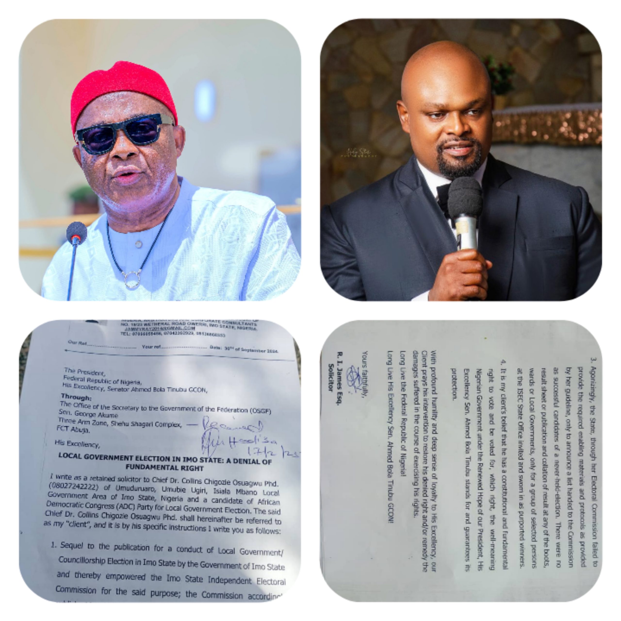 DR COLLINS OSUAGWU DRAGS IMO GOVT. TO TINUBU’ S OFFICE OVER FAULTY 2024 LOCAL GOVT ELECTIONS;