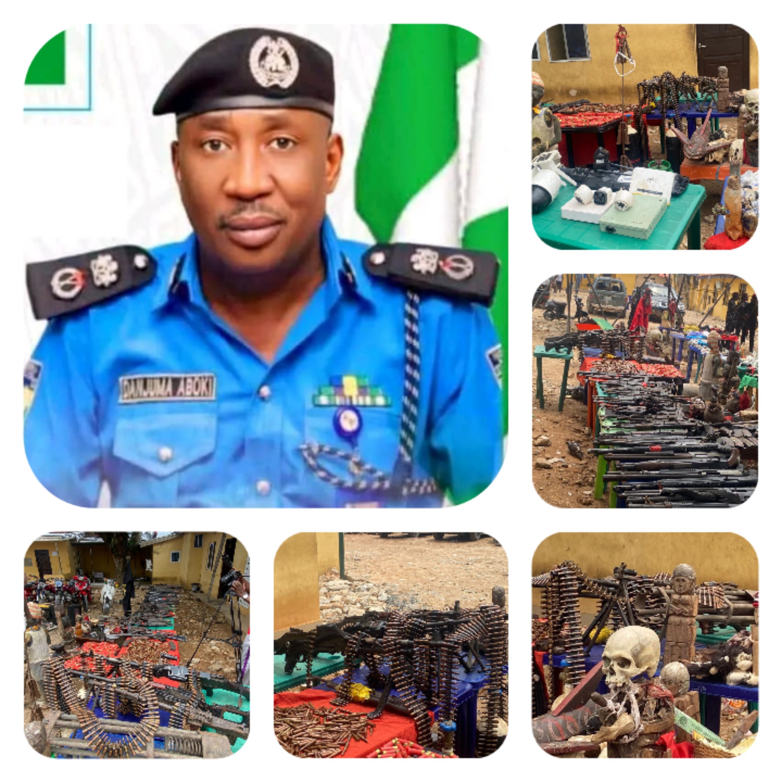 According to a press release issued by the Police Public Relations Officer, DSP Henry Okoye, investigations led to the recovery of a large cache of arms and explosives. These include: 2 General Purpose Machine Guns (GPMG14 AK-47 rifle’s, 20 pump-action shot gun, 4 fabricated rocket launchers,