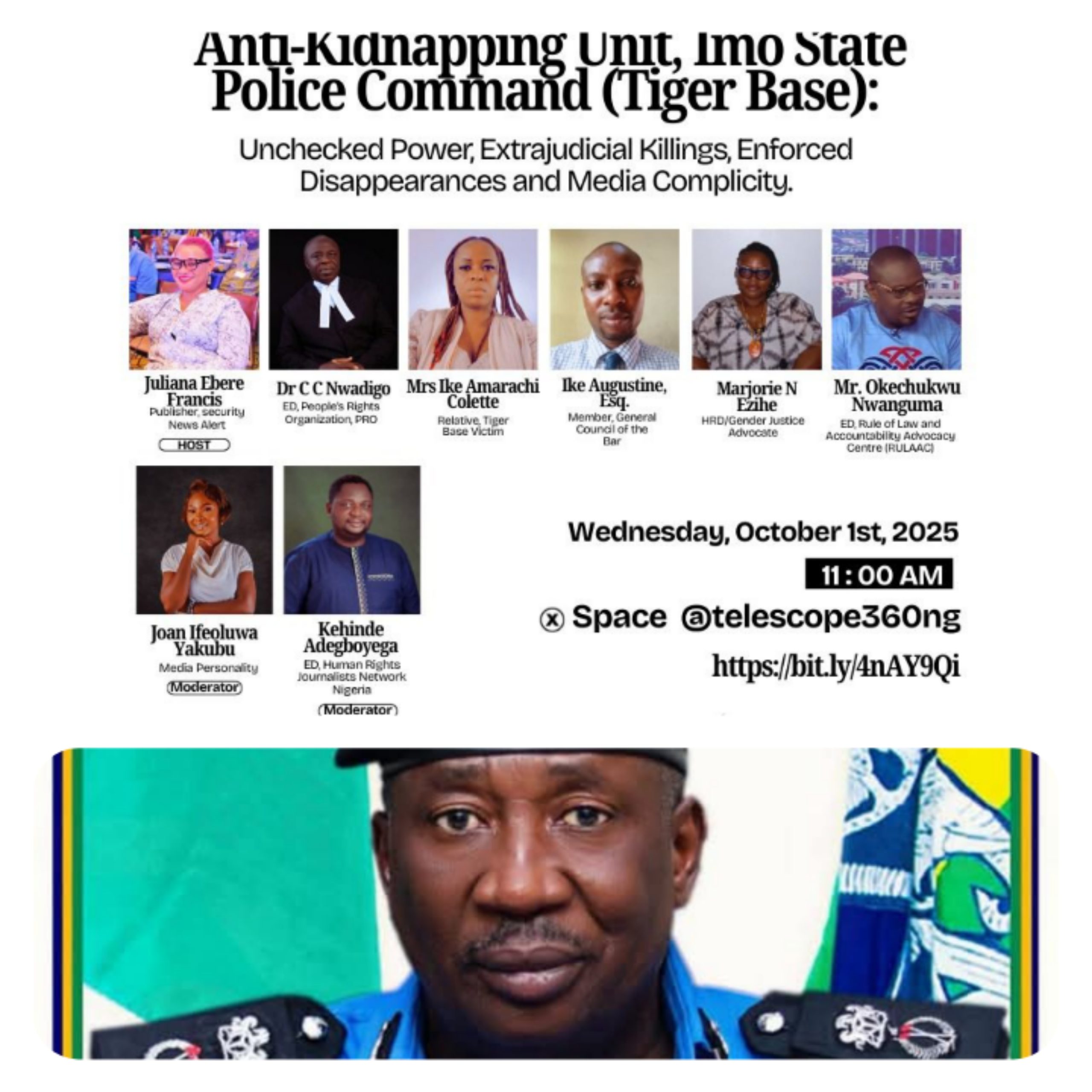 A recent online discussion hosted on social media platform X (formerly Twitter) by Ms. Juliana Francis, Publisher of Security News Alert, has sparked outrage among media practitioners in Imo State. The discussion, titled “Anti-Kidnapping Unit Imo State Police Command: Unchecked Power, Extra-Judicial Killings, Enforced Disappearances, and Media Complicity”, was criticized for lacking investigative depth and for allegedly targeting the head of the unit, Assistant Commissioner of Police (ACP) Oladimeji Odeyeyiwa.