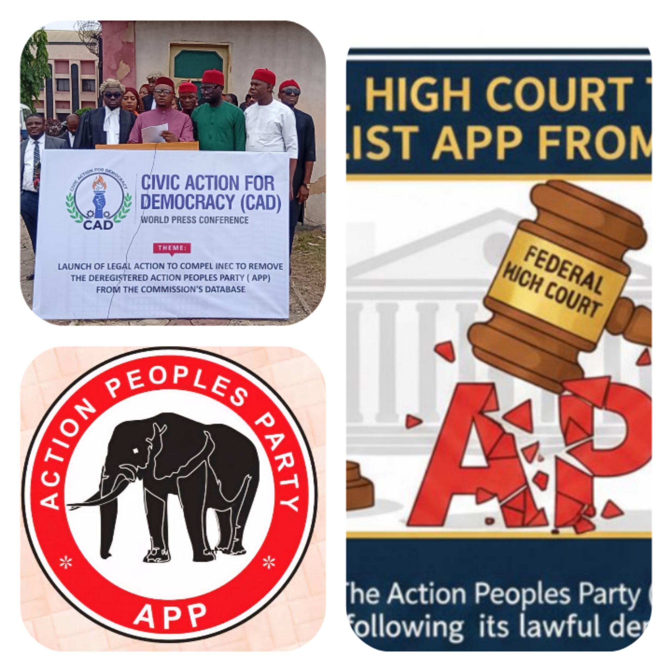 A non governmental organization and a political pressure group under the aegis of Civic Action for Democracy (CAD) on Tuesday announced the filing of a suit at the Federal High Court, Owerri, Imo State, challenging the Independent National Electoral Commission (INEC) over the continued listing and welcoming of the Action Peoples Party (APP) as a registered political party after it’s originally deregistered in February 6, 2020.